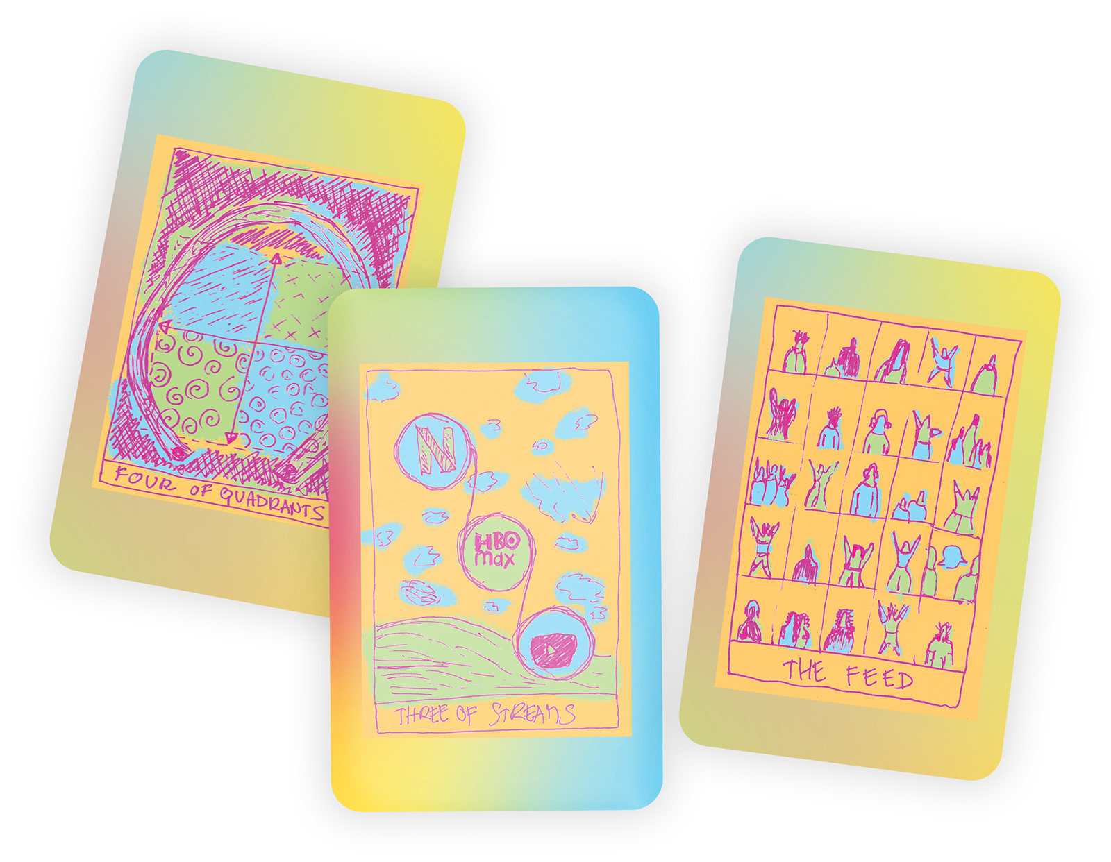 A deck of hand-drawn cards with three (!)