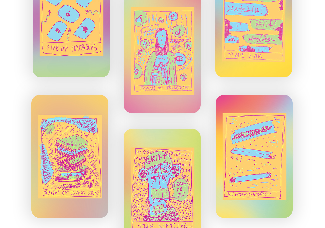 Millennial Tarot combines existential anxiety, climate grief, economic turmoil and digital subjectivity into a handy divination tool for the weary thirty year olds.